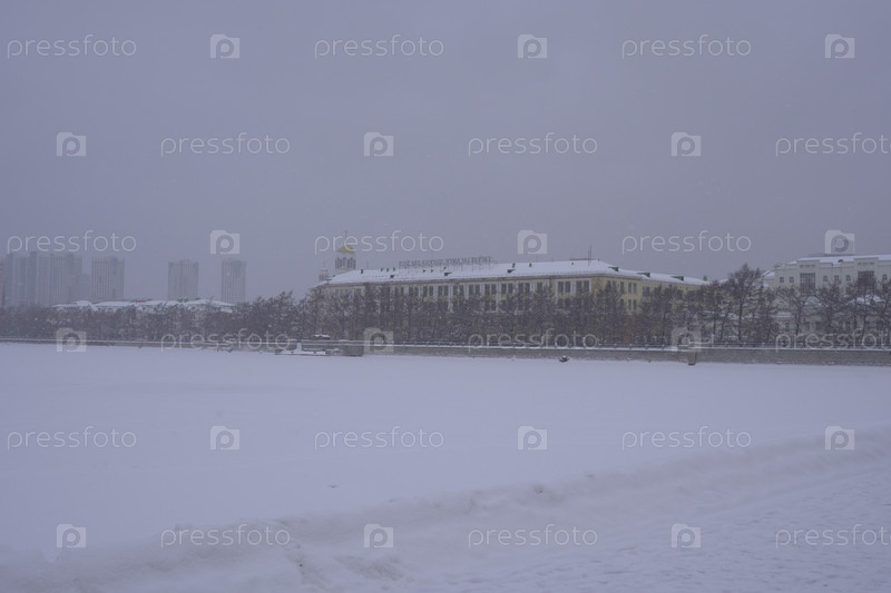 Зимний городской пейзаж снежного Екатеринбурга