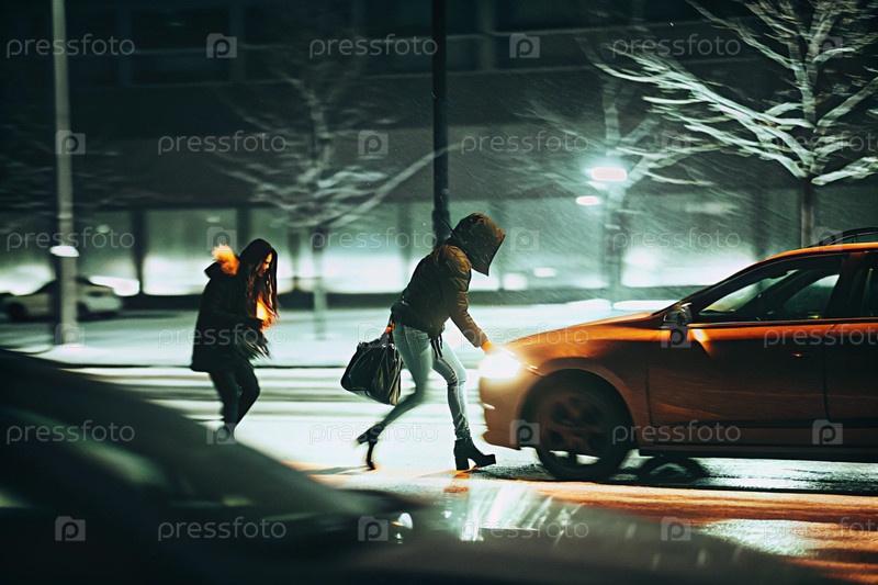 Люди скользят по ледяной канадской улице во время морозного дождя с автомобилями и зимним движением