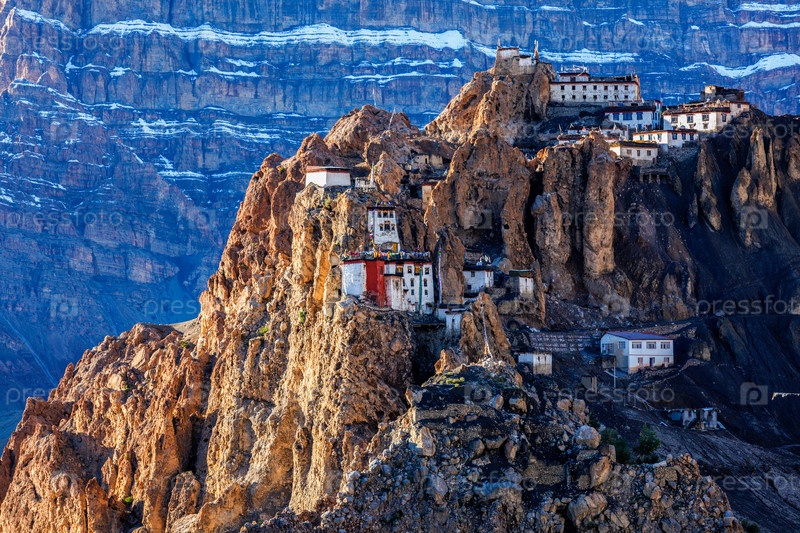 Монастырь Данкар, расположенный на скале в Гималаях, Индия