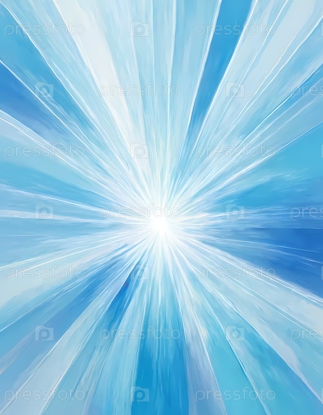 Яркие лучи света исходят из центра, отбрасывая успокаивающее синее свечение, которое наполняет пространство безмятежностью, приглашая зрителей к размышлениям и расслаблению среди умиротворяющих оттенков