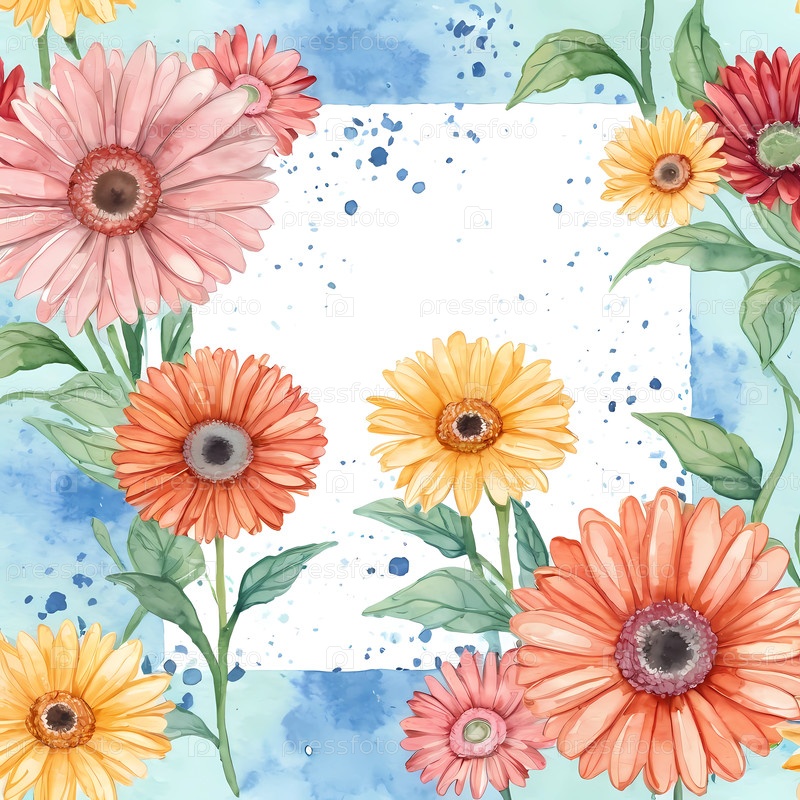 Отметьте особые моменты жизни на открытке из цветов герберы с яркими акварелями и пустым пространством для сердечных сообщений и генеративных надписей ИИ