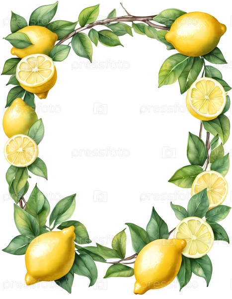 Яркая рамка акварели, сделанная из цитрусовых лимонов идеально подходит для приглашений и декоративных целей в различных генеративных арт-проектах AI