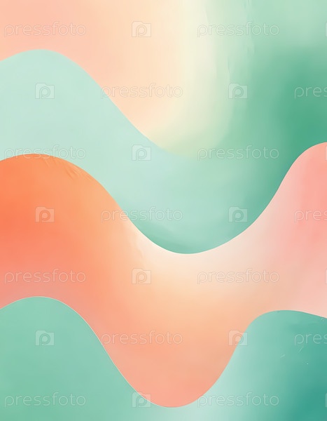 Кривые в мягких пастельных тонах зеленого, персикового и мятного цветов грациозно переплетаются между собой, создавая успокаивающую атмосферу, идеально подходящую для проектов современного искусства и внутреннего декора