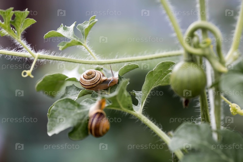 Садовый вредитель. виноградный улитка (Helix pomatia) в садовой культуре. съедобная улитка. земной моллюск гастропод семейства Helicidae
