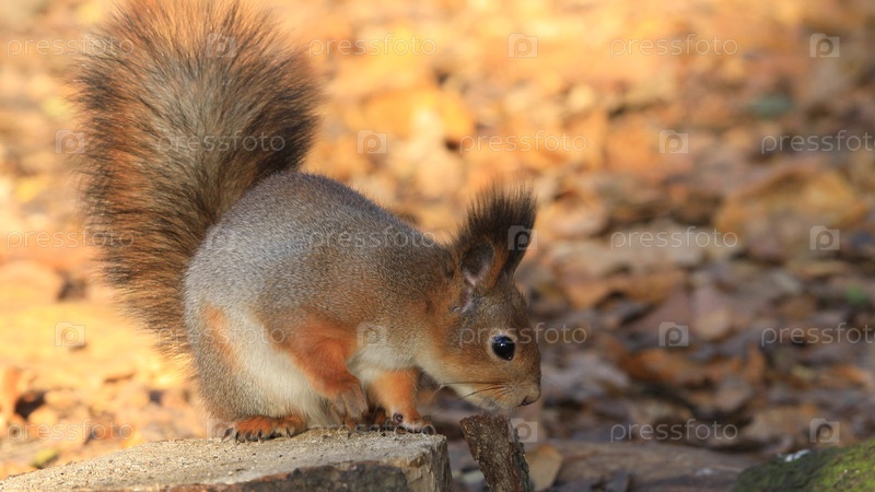 Пушистая белка в осеннем лесу