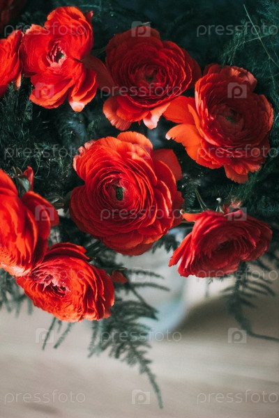 Букет красных ранункулов