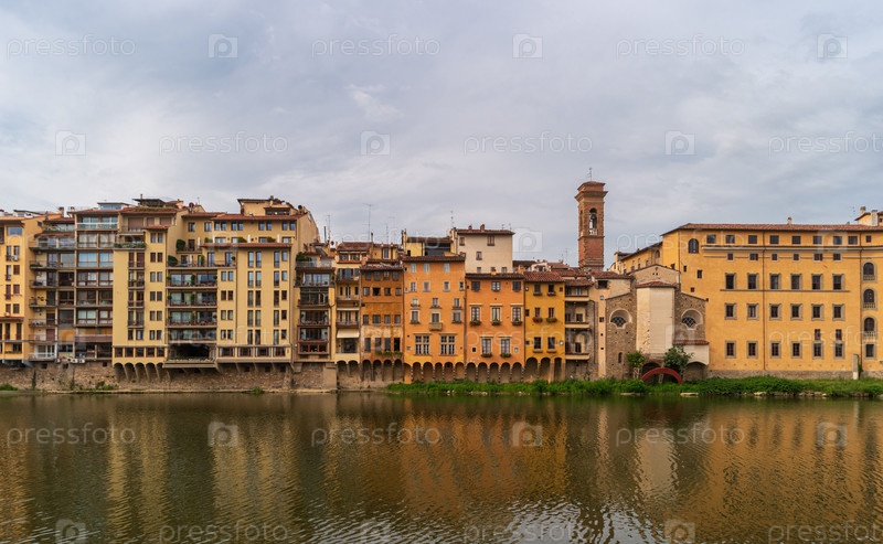 Вид на набережную реки Арно с живописными зданиями
