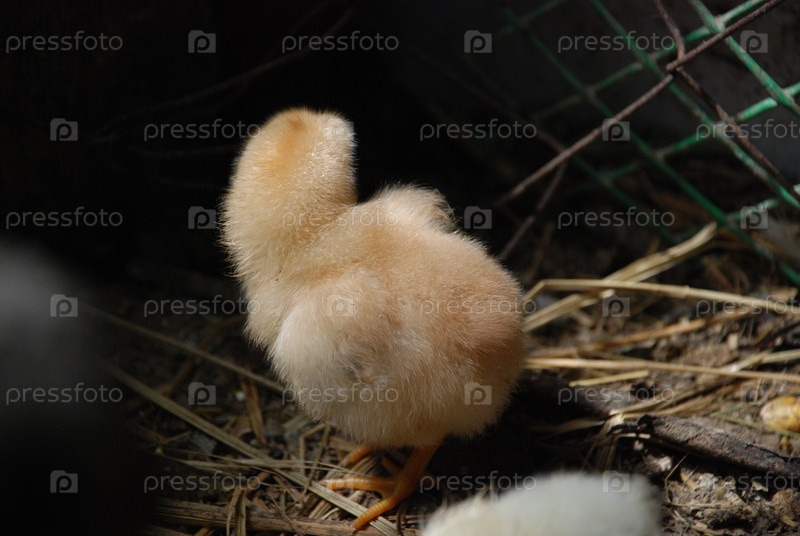 Два желтых цыпленка в курятнике