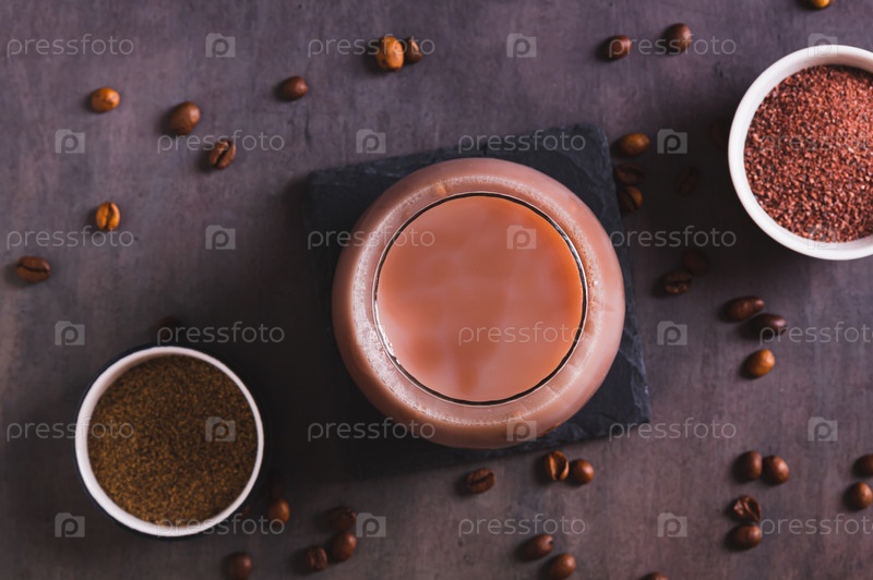 Закройте острый кофе с шоколадом, солью и перцем в стакане на столе