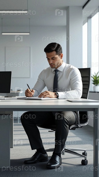 Бизнесмен в офисе за столом делает записи в дневнике