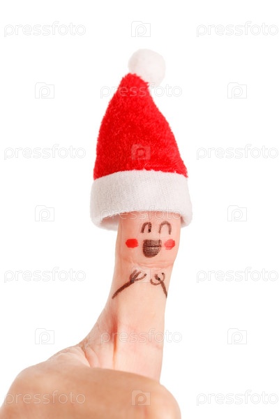 Палец, одетый в колпак Санта-Клауса