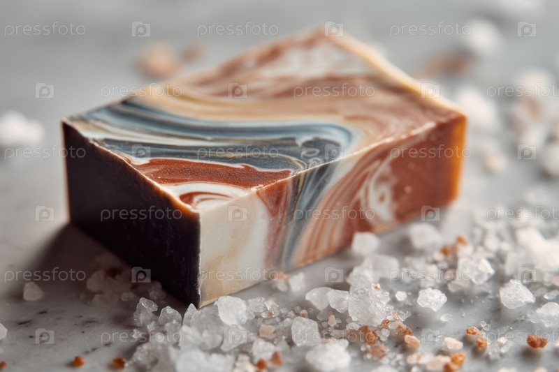 Ручное изготовление мраморного мыла на кристаллах морской соли, демонстрируя естественное мастерство по уходу за кожей и изделия для купания