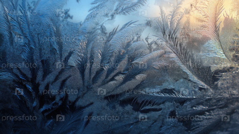 Сложные кристаллы льда, образующие структуры папоротника на замороженном стекле, идеально подходят для изучения макроприроды, сезонных научных статей и изображений холодной погоды