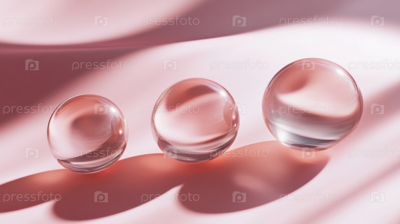 Минимальная абстрактная композиция с прозрачными стеклянными сферами и мягкими градиентами, идеально подходит для современных концепций дизайна, художественных фонов и современного визуального повествования