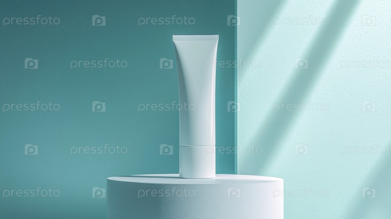 Чистый косметический макет трубки на мягком теневом пьедестале, предназначенном для брендинга по уходу за кожей, презентации продукта и минималистских рекламных макетов