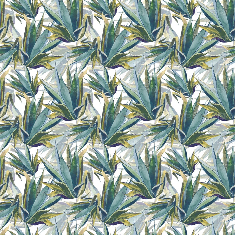 Акварель бесшовный рисунок с листьями алоэ вера на белом фоне. ботаническая иллюстрация для упаковочной бумаги, эко-упаковки, текстиля и печати