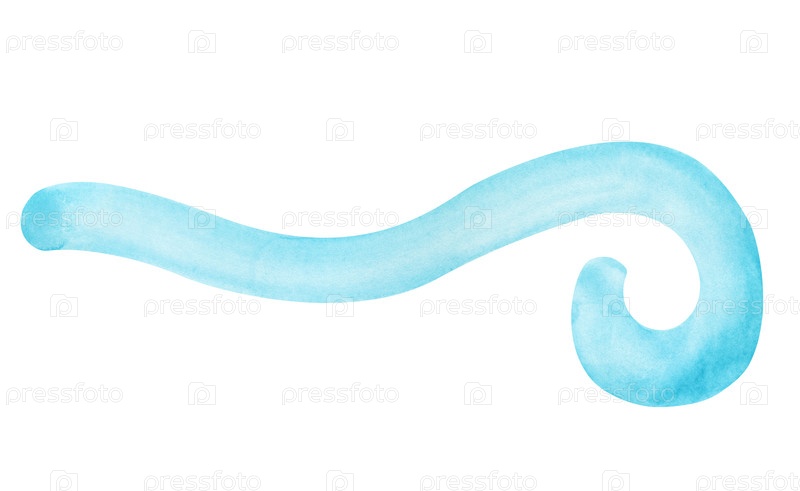 Волновая линия, похожая на голубую волну на изолированном фоне. Акварельная иллюстрация стилизованной морской волны. Абстрактный клипарт для дизайна в морском стиле