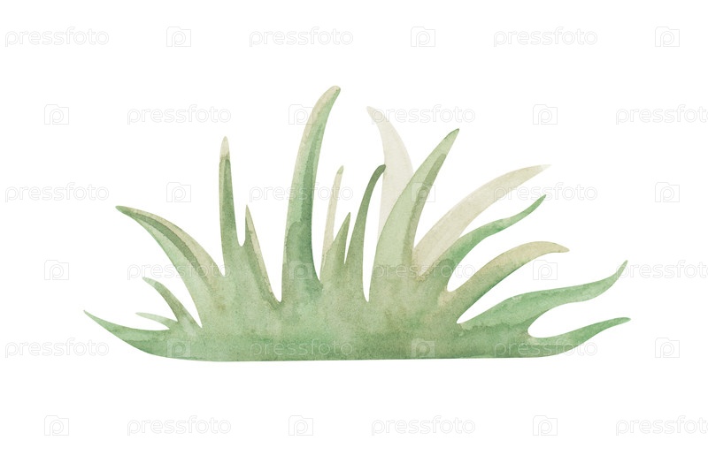 Минималистский рисунок зеленой травы в натуральных цветах. Иллюстрация акварель на изолированном фоне. Ботанический клипарт с кучи травы для лета, сельское декор