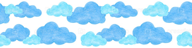 Бесшовная оболочка с окрашенными плавающими облаками. карандаш на изолированном фоне. бесшовный шаблон для детских комнат, детских книг и текстиля