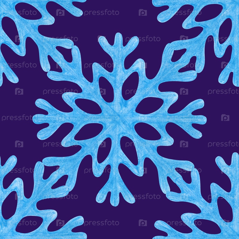Геометрический бесшовный узор с голубыми снежинками на темном фоне. Рисуйте цветными карандашами. Картиновый рисунок с нежными снежинками по зимним темам и праздничным украшениям