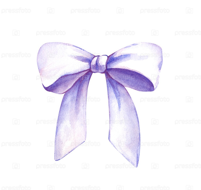 Красивый световой лук из широкой ленты для праздничного украшения. Иллюстрация акварели на изолированном фоне. Клипарт с реалистичными декорациями для создания подарков, открыток и приглашений