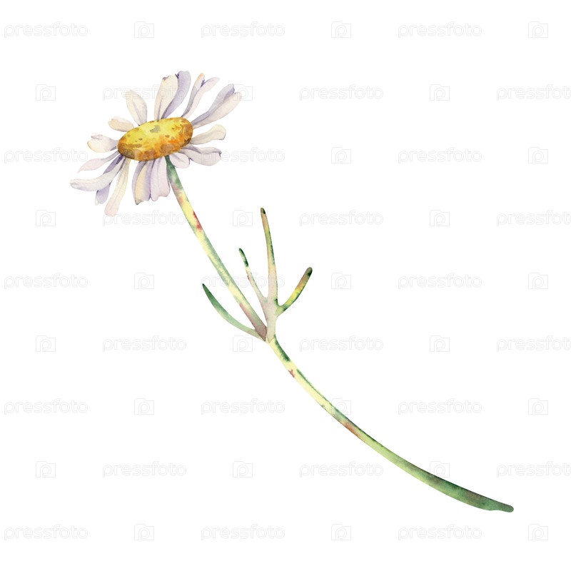 Белый цветок на длинном стебле. Акварельная иллюстрация дикого цвета на изолированном фоне. Ботанический рисунок для свадебных открыток и приглашений