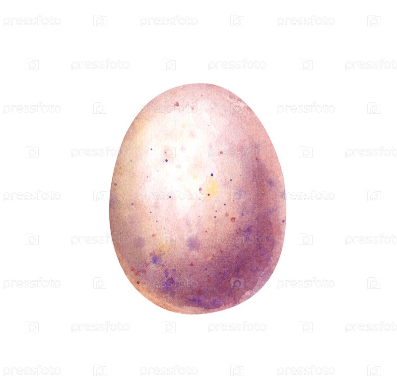 Одно розовое яйцо со спрэями краски на изолированном фоне. акварельная иллюстрация окрашенного куриного яйца. реалистичный клипарт для украшения пасхального праздника. символ Пасхи