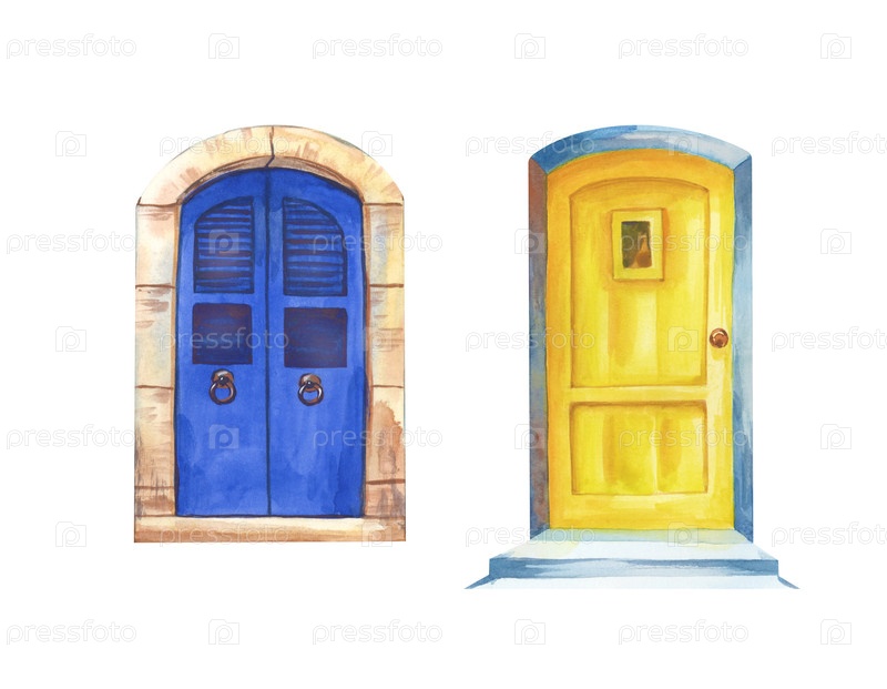 Акварельная иллюстрация с традиционными греческими архитектурными элементами для туристического бизнеса, печати, икон