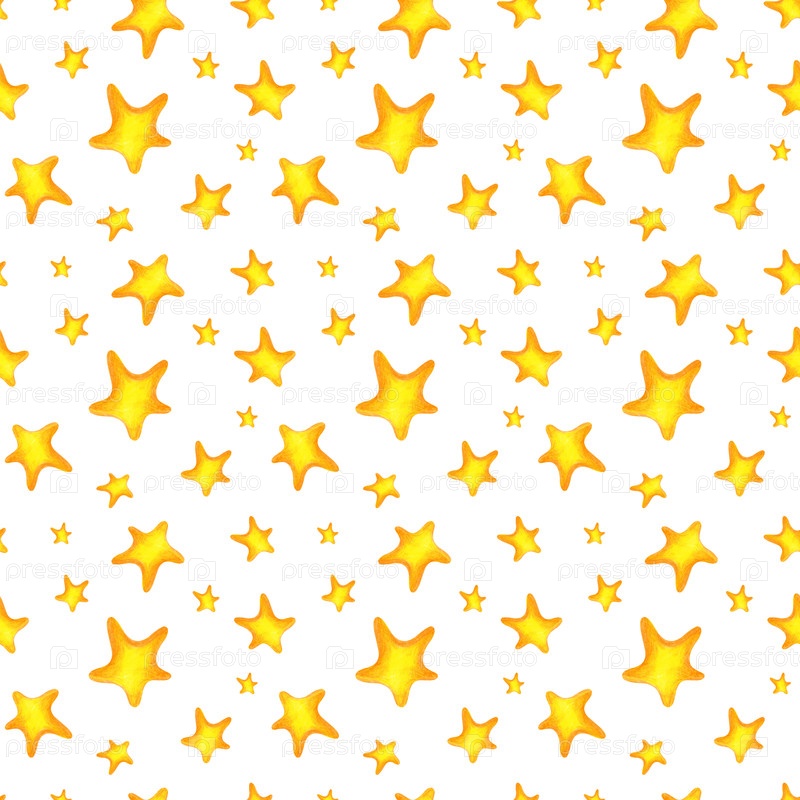 Бесшовный рисунок с золотыми звездами на изолированном фоне. Рисовать цветными карандашами. Шаблон карандаша для текстиля, обои для детской комнаты или упаковки подарка
