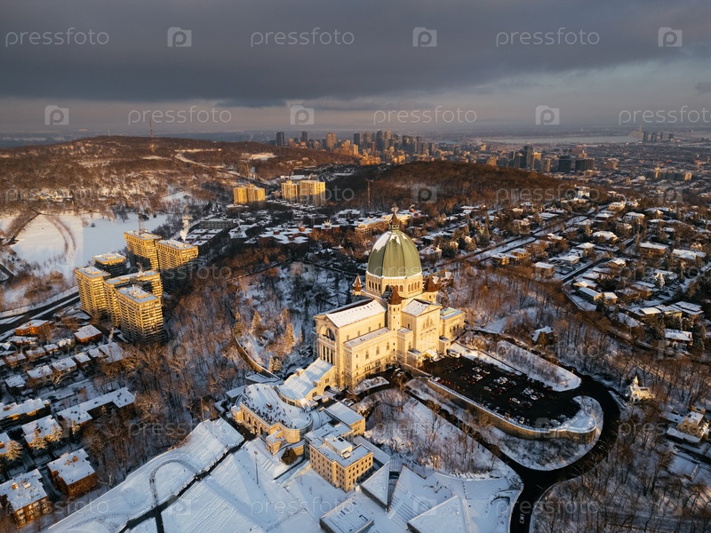 Вид с воздуха на базилику католического собора Оратория в Монреале, Квебек, Канада