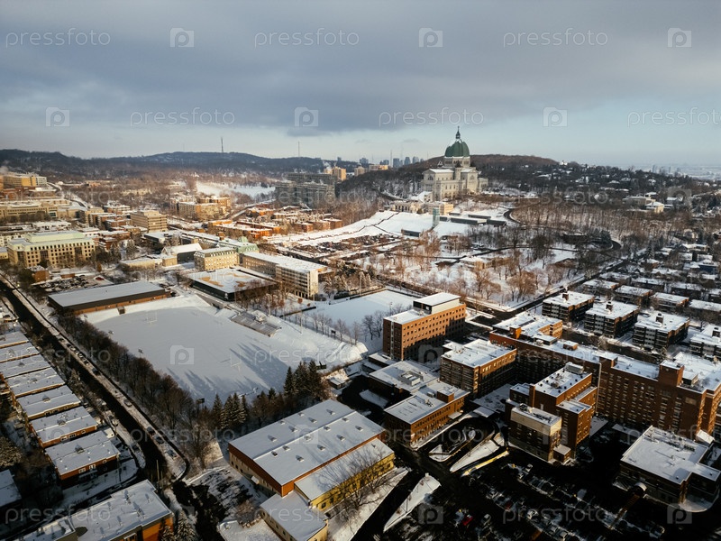 Вид с воздуха на базилику католического собора Оратория в Монреале, Квебек, Канада