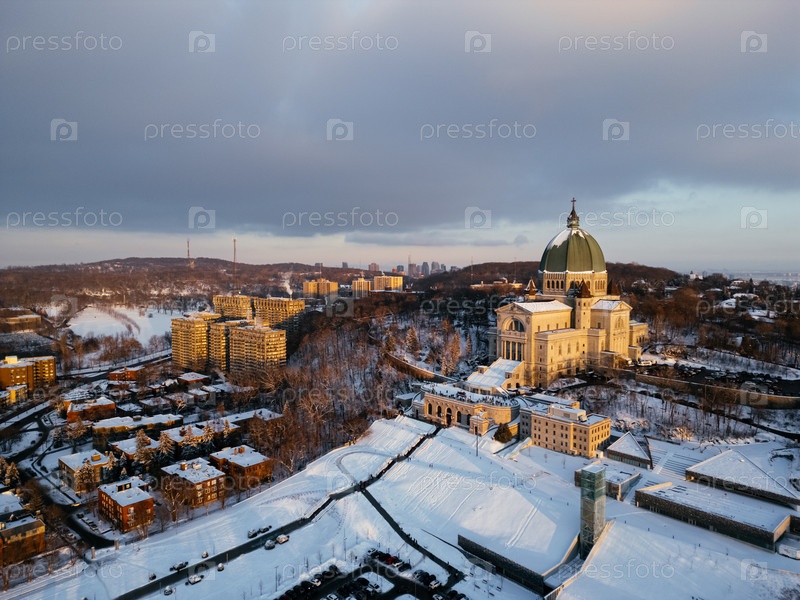 Вид с воздуха на базилику католического собора Оратория в Монреале, Квебек, Канада