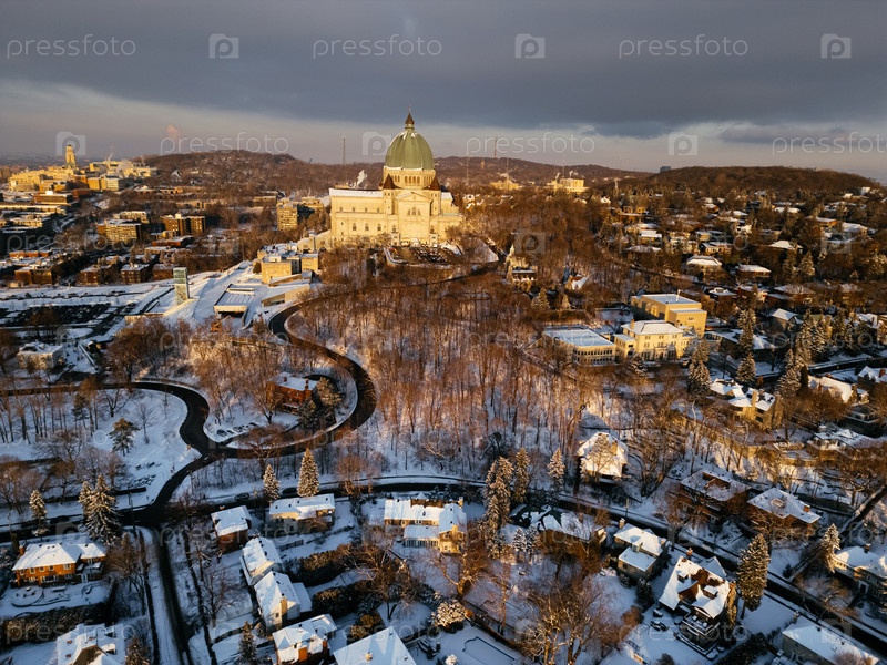 Вид с воздуха на базилику католического собора Оратория в Монреале, Квебек, Канада