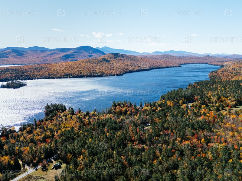 Осенние цвета на горнолыжном курорте White Face Mountain и озере