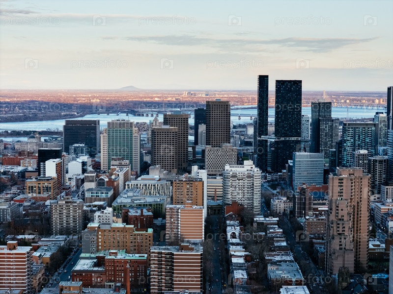Городской горизонт Монреаля на рассвете, Квебек, Канада