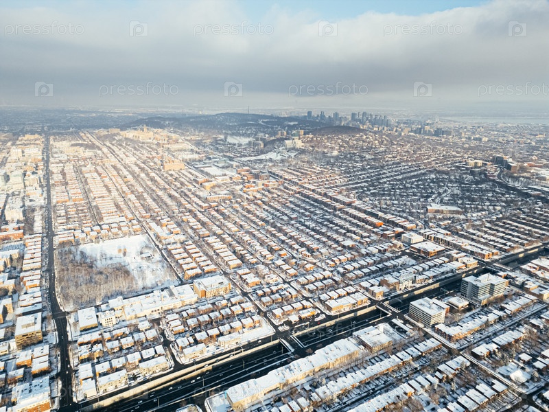 Вид на район и шоссе в Монреале, Канада