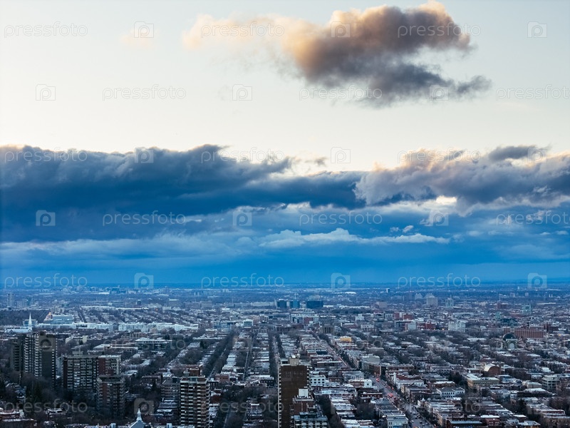 Городской горизонт Монреаля на рассвете, Квебек, Канада