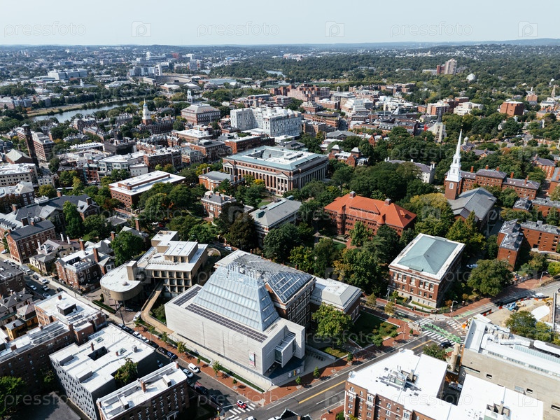 Вид с беспилотника Гарвард-Ярд, Кембридж, штат Массачусетс, США