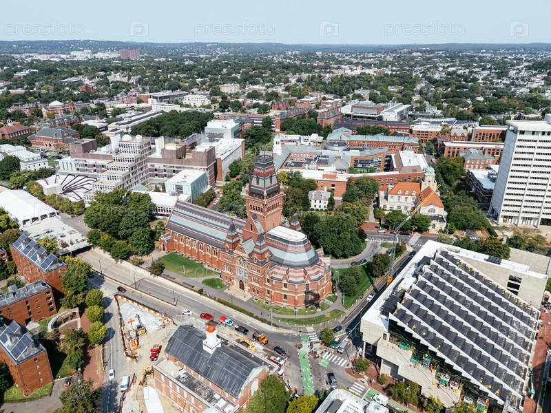 Вид с беспилотника Гарвард-Ярд, Кембридж, штат Массачусетс, США