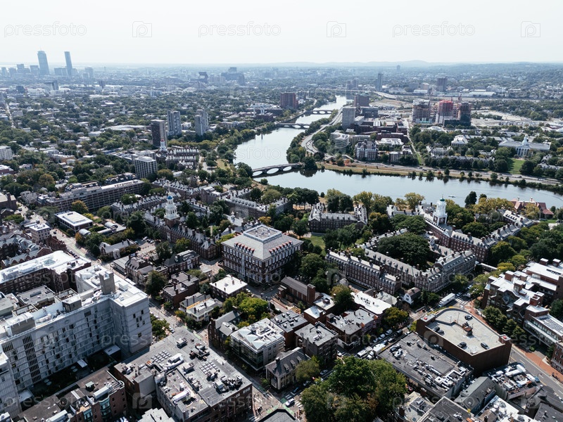 Вид с беспилотника Гарвард-Ярд, Кембридж, штат Массачусетс, США