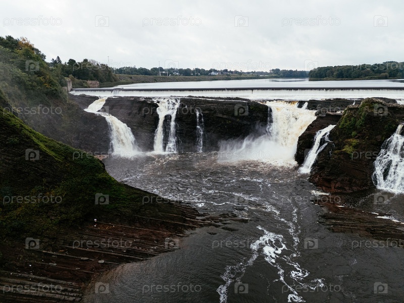 Вид с воздуха на водопад реки Чаудире, город Квебек, провинция Квебек, Канада