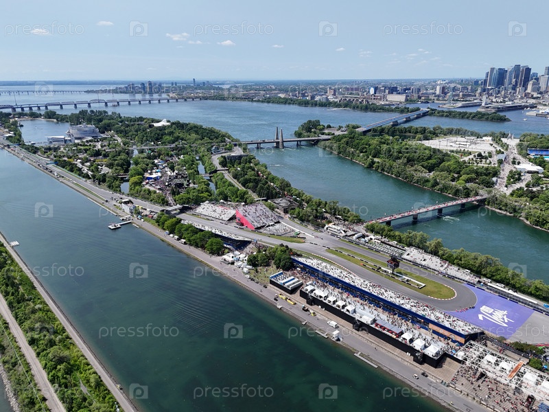 14 июня 2025 года.Монреальский рейс вертолёта F1 с переполненными трибунами, водными каналами и горизонтом города. g