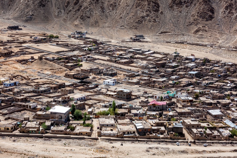 Вид из воздуха на город Лех сверху.Ладак, Индия