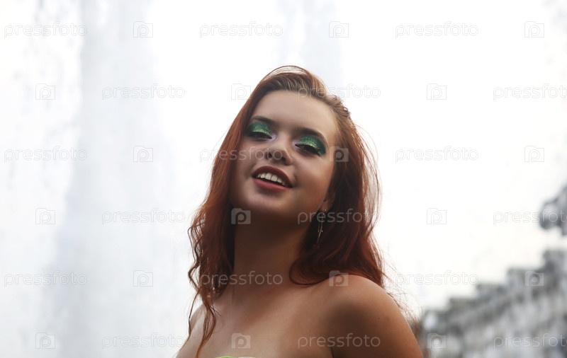 Красивая девушка с ярким макияжем ходит по улице