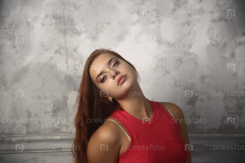 Красивая девушка с ярким макияжем в красном томе