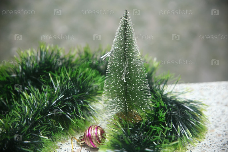 Рождественская елка, брекеты и праздничная игрушка на столе