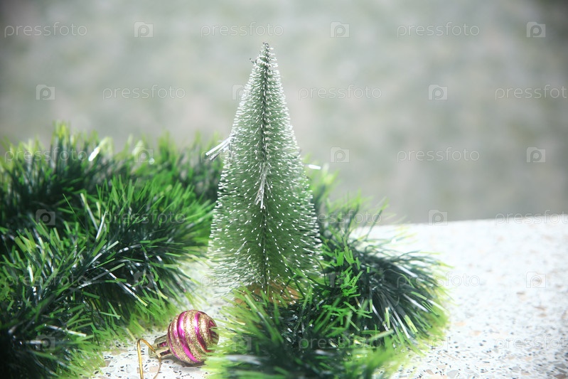 Рождественская елка, брекеты и праздничная игрушка на столе