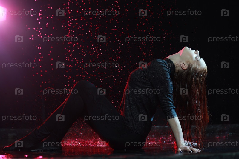 Красивая девушка позирует под дождем