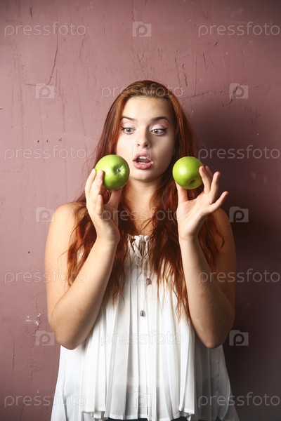 Красивая девушка с зеленым яблоком