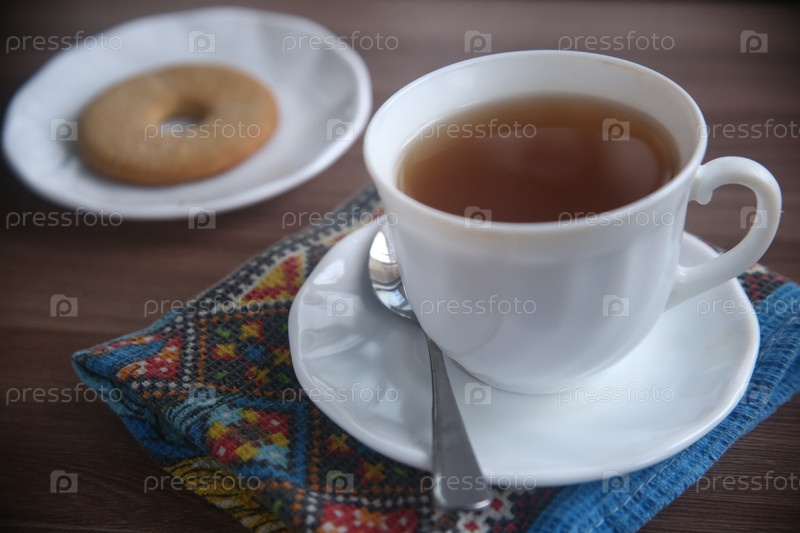 Чашка кофе с печеньем на тарелке